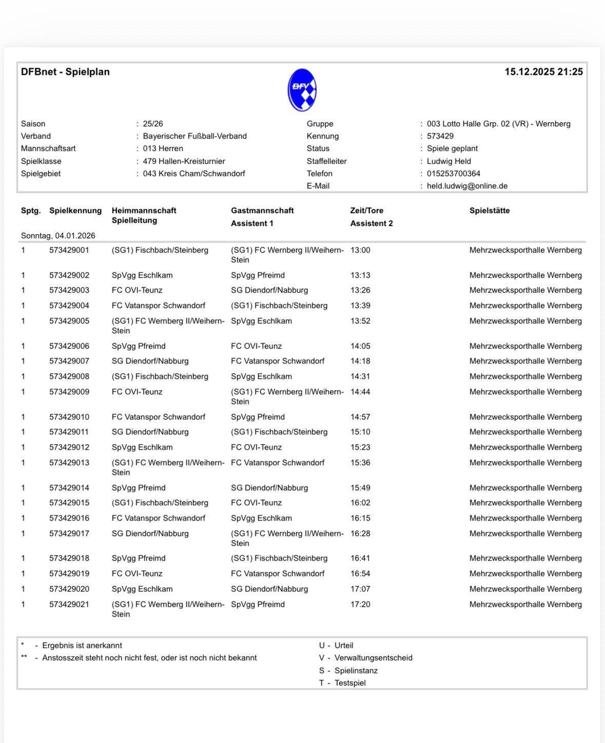 Hallenturnier in Schwarzenfeld am 03.01.26